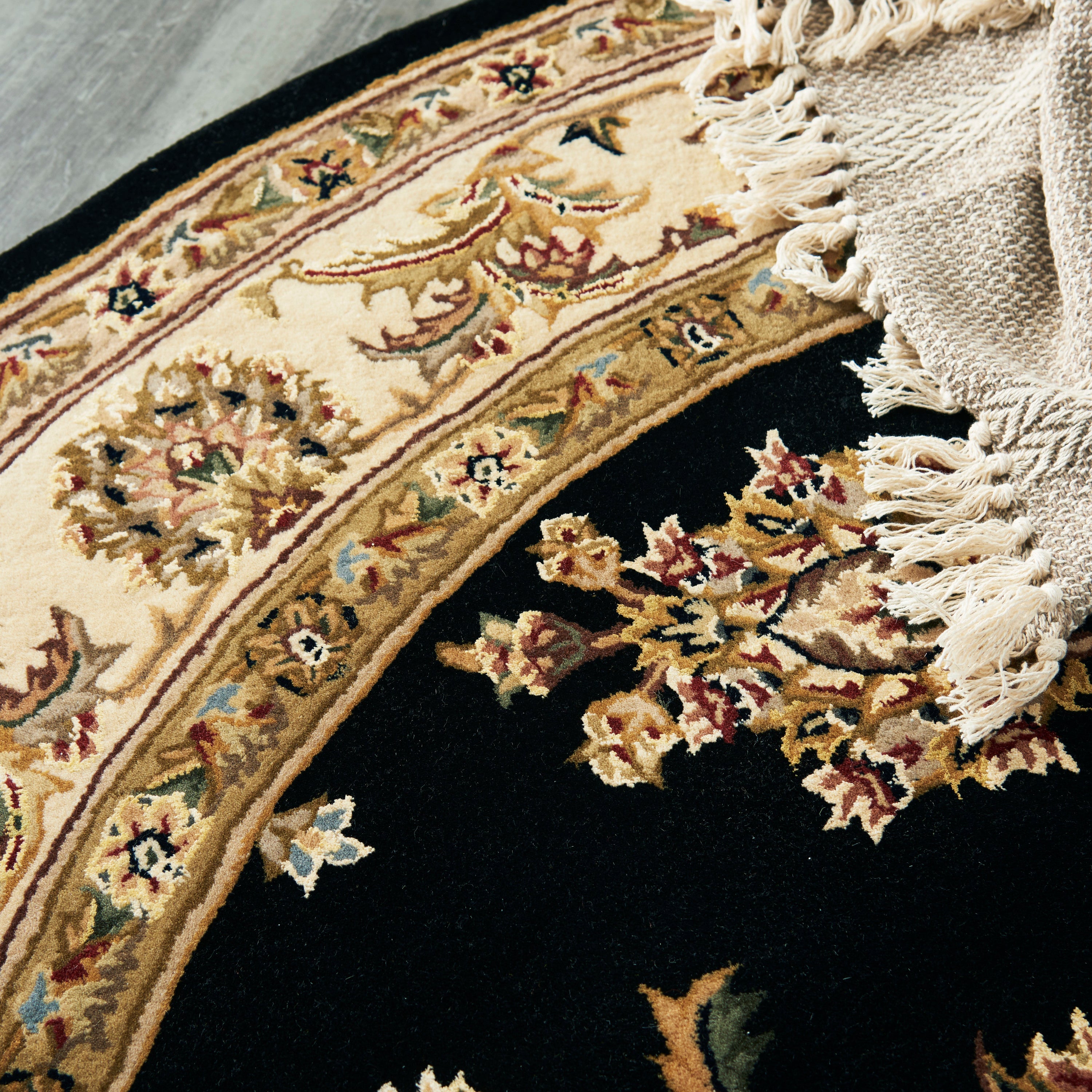 Nourison's signature handmade rug collection features traditional Persian and European designs, recreated in the luxurious texture of 100% New Zealand wool highlighted with subtle accents of pure silk. These extraordinary carpets are offered in a wide assortment of shapes and sizes, including elegant rounds, high fashion ovals and, of course, a full assortment of standard area sizes and runners. Specially developed hand tufting techniques create a high-density pile that defines a new standard of beauty and sensual appeal for handmade carpets.